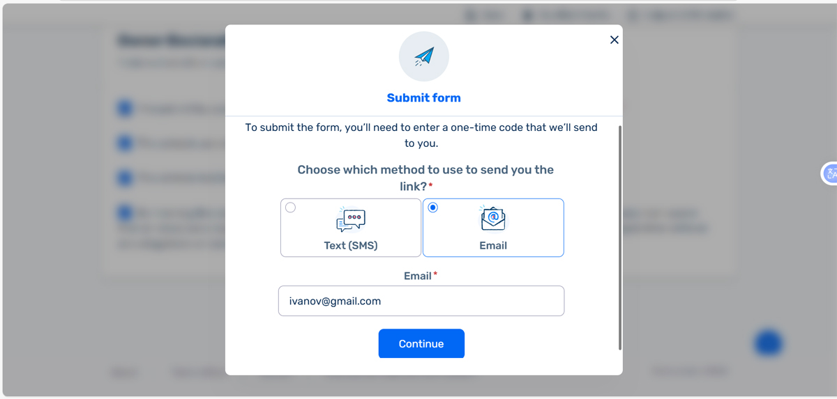 - Choose which method to use to send you the link? / Выберите способ отправки ссылки
