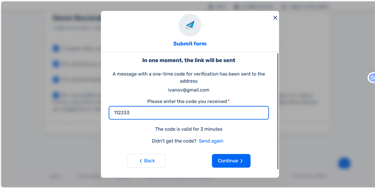 - Please enter the code you received / Пожалуйста, введите полученный вами код